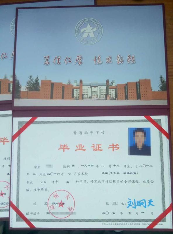 鄭州大學遠程教育學生修完教學計劃規定的全部課程,成績合格并同時完成教學計劃規定的實踐環節、通過畢業設計者,由鄭州大學頒發國家承認學歷的網絡教育本、??飘厴I證書,本科層次達到學位標準的頒發成人教育學位證書。學歷文憑及學位證書在學生畢業時由我校按照教育部對網絡教育的有關規定,實行教育部高等教育學歷文憑電子注冊,國家予以承認。
