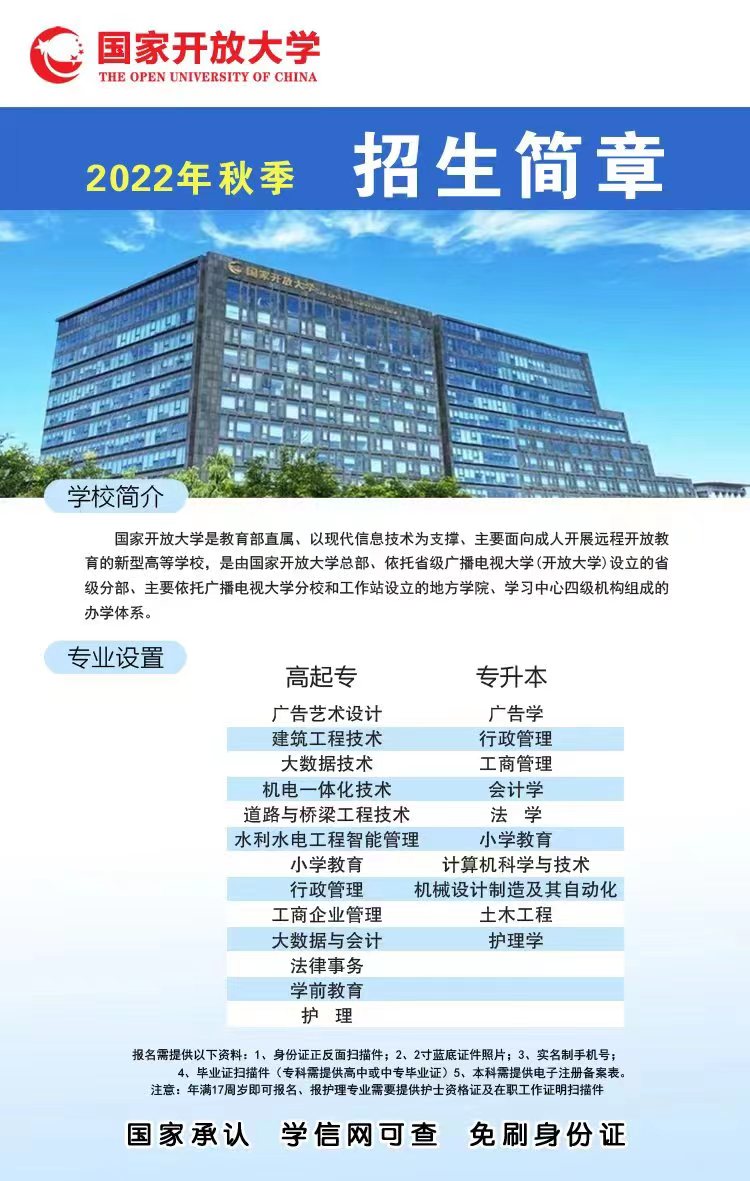 今年國家開放大學報名就剩下最后幾天的時間了,想要趕上本季入學的同學們,抓緊時間咨詢報名啦!還有什么專業(yè)可以報考?下面隨我來具體看看吧!