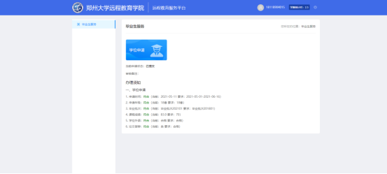 各學(xué)習(xí)中心負(fù)責(zé)通知學(xué)生,在規(guī)定時(shí)間內(nèi)登錄鄭州大學(xué)遠(yuǎn)程教育服務(wù)平臺(tái)提交學(xué)士學(xué)位申請(qǐng),過(guò)期不再受理。