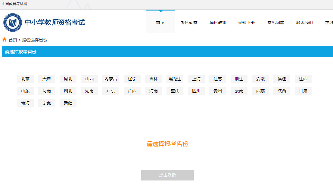 3、考生進入報名系統(tǒng)后,選擇好報名省份,點“點擊報名”;
