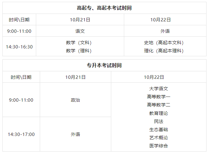 今年河南成人高考的考試時間是定在10月21日、22日,考試總分:高起專(450分)、高起本(600分)、專升本(450分)。
