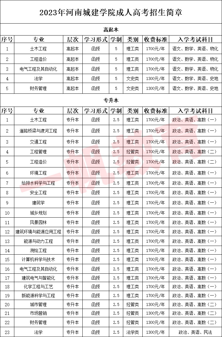 2023年河南城建學(xué)院成人高考招生專業(yè)